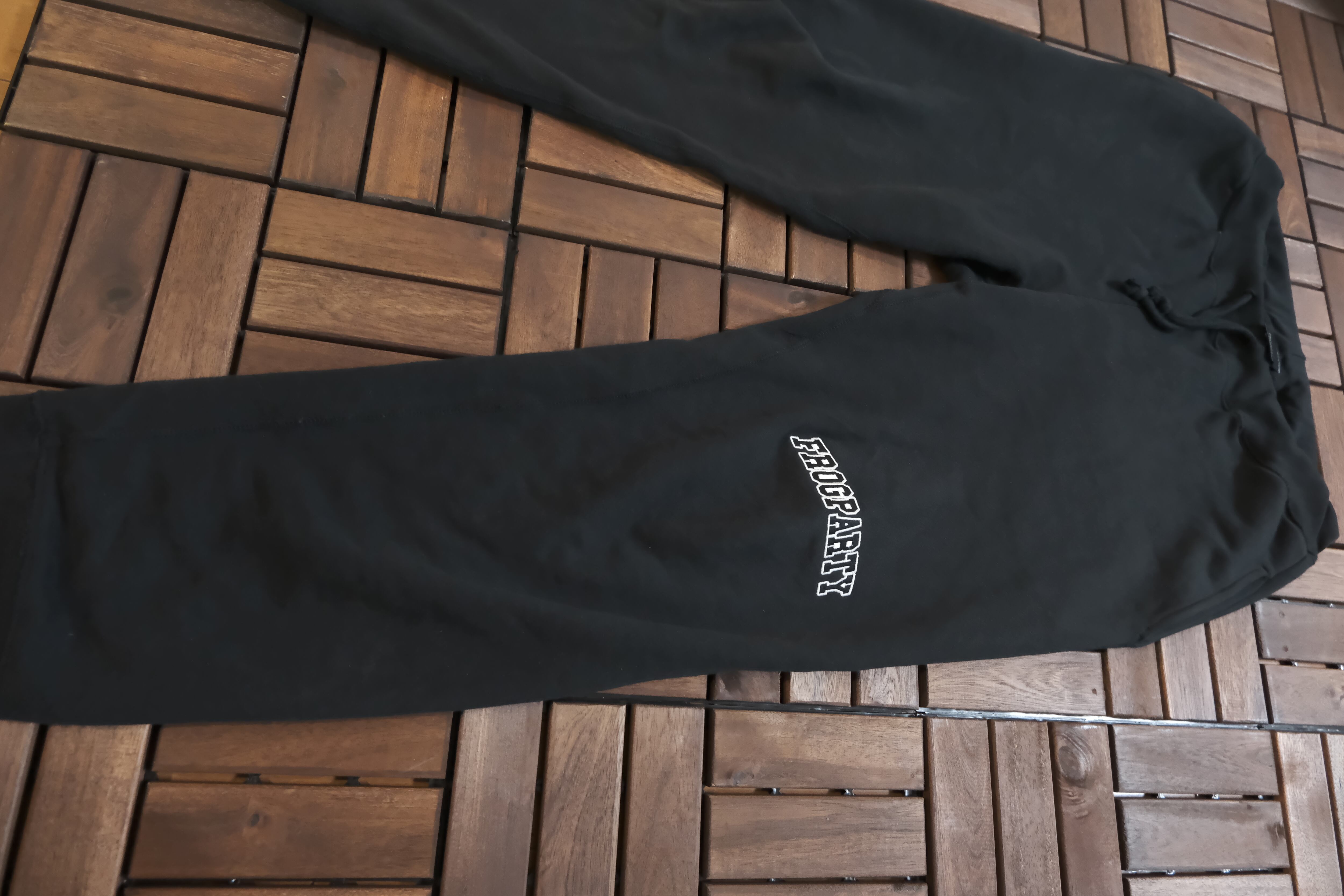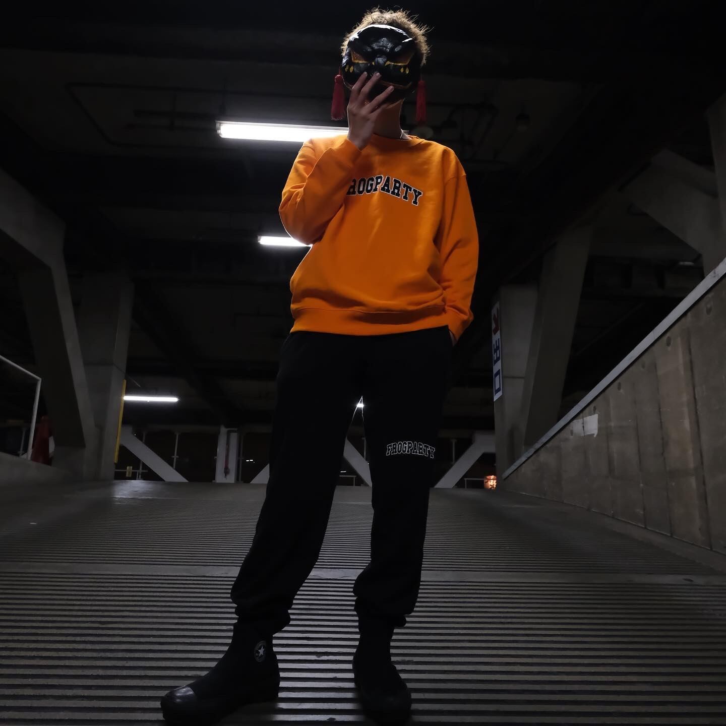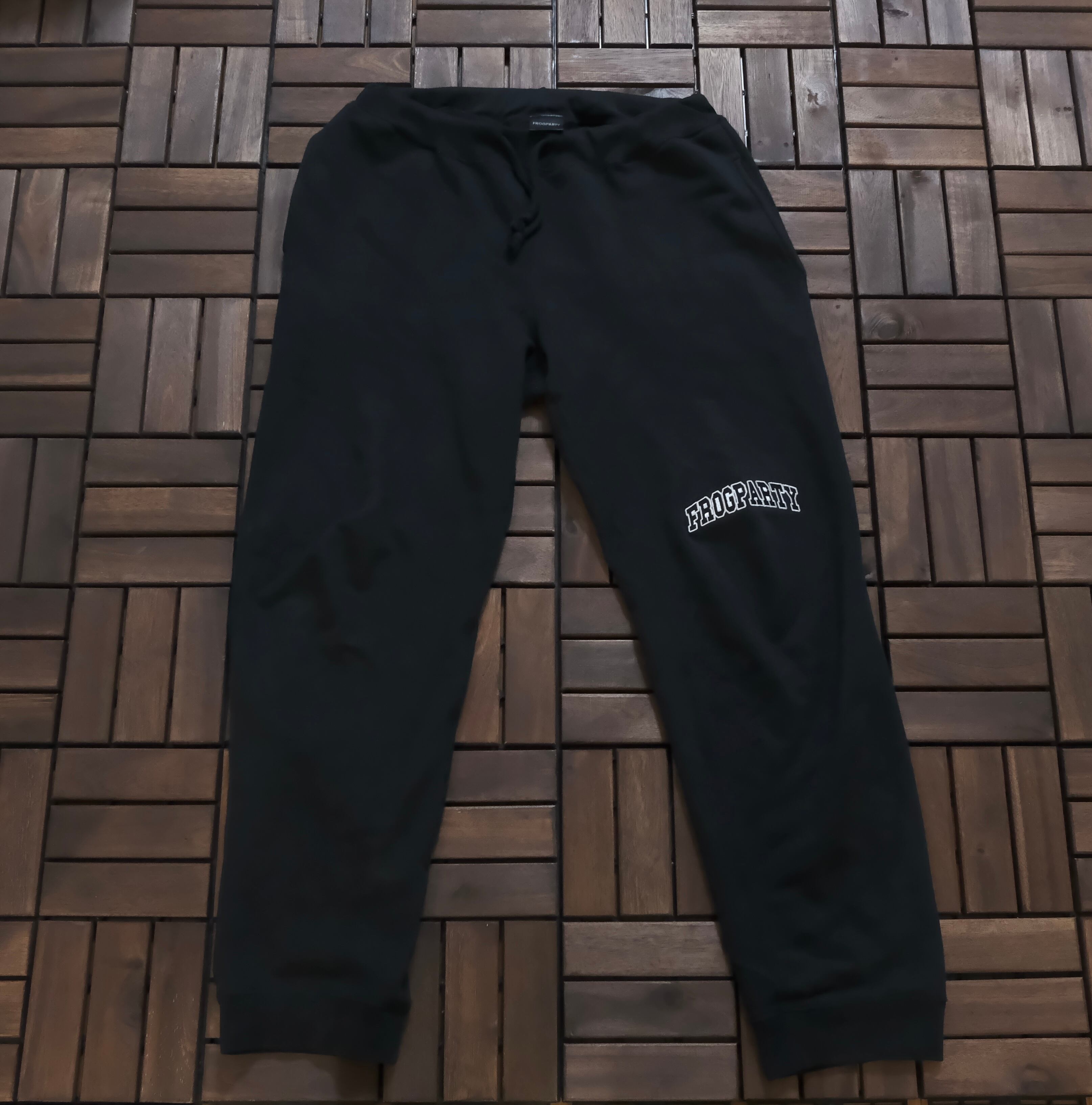 オーバーサイズシルエットの刺繍でカレッジロゴを施したスウェットパンツです。左膝上あたりにロゴの刺繍が来るようデザインされています。